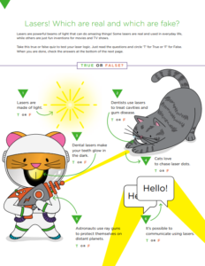 How much do you know about lasers? Answer the true or false questions on the provided dental worksheet to show off your laser knowledge. Discover how your dentist might use lasers or other ways they can be used.
