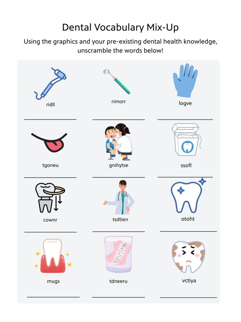 Dental Vocabulary Mix-Up | Dental Worksheet