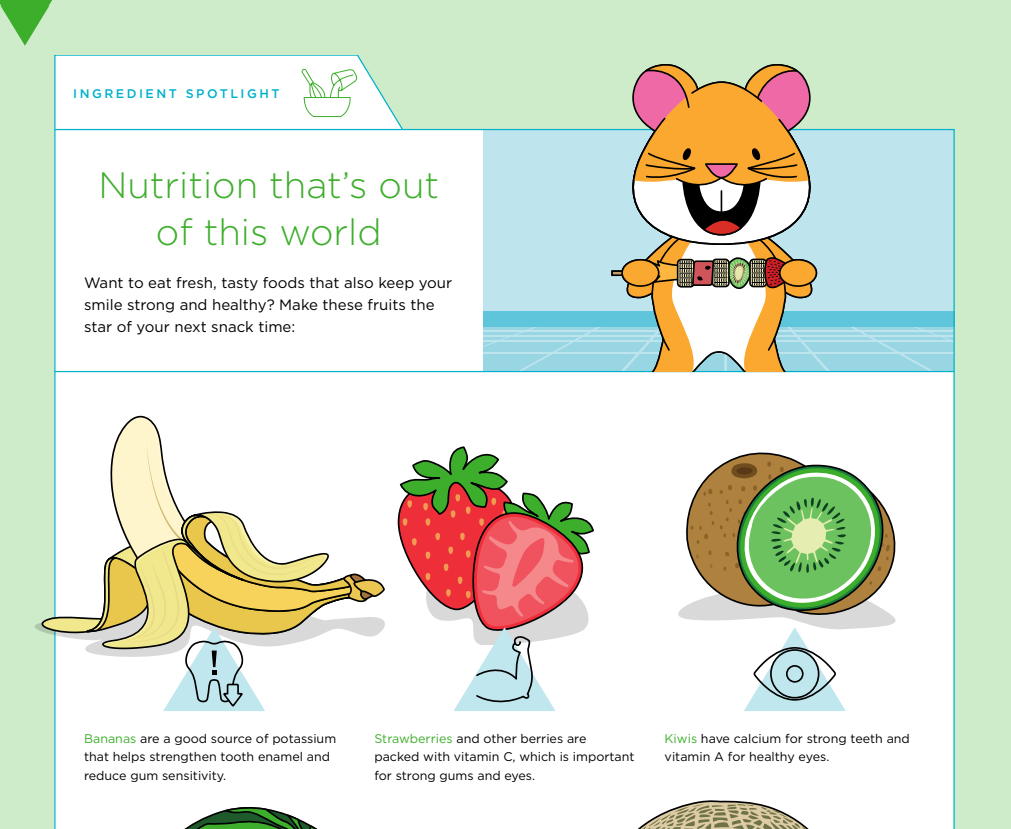 One of the most important things you can do for the health of your teeth is to eat healthy foods. Eating fruits and vegetables packed with nutrients that help keep your body and your teeth healthy is key, but so is avoiding or limiting the amount of sugar you consume. With this dental worksheet, you can take a look at nutritious fruits that can fuel your body and information about the benefits they provide. Then view the provided recipe using these fruits to make a healthy treat.